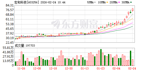 宏和科技再度涨停,4个往将来内录得3个涨停,累计涨幅为30.07%,累计换手率为11.44%。戒指9:54,该股本日成交量1929.99万股,成交金额14.69亿元,换手率2.19%。最新A股总市值达692.87亿元。